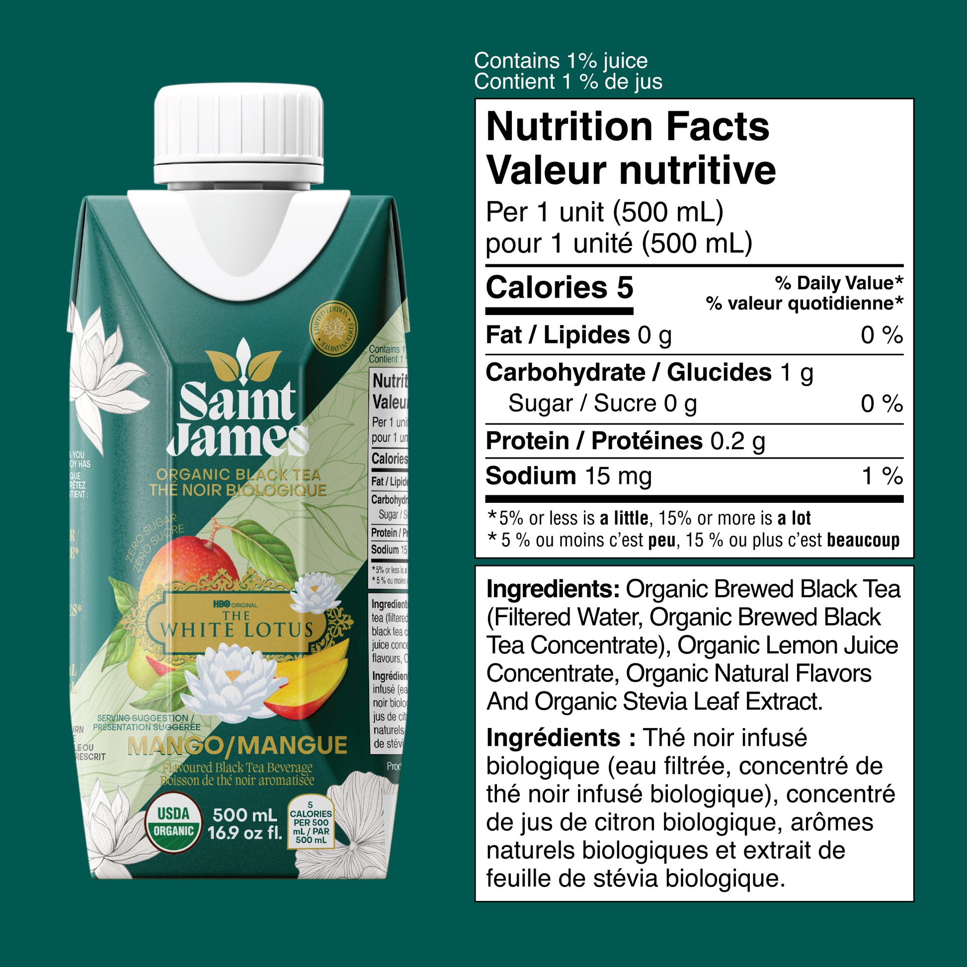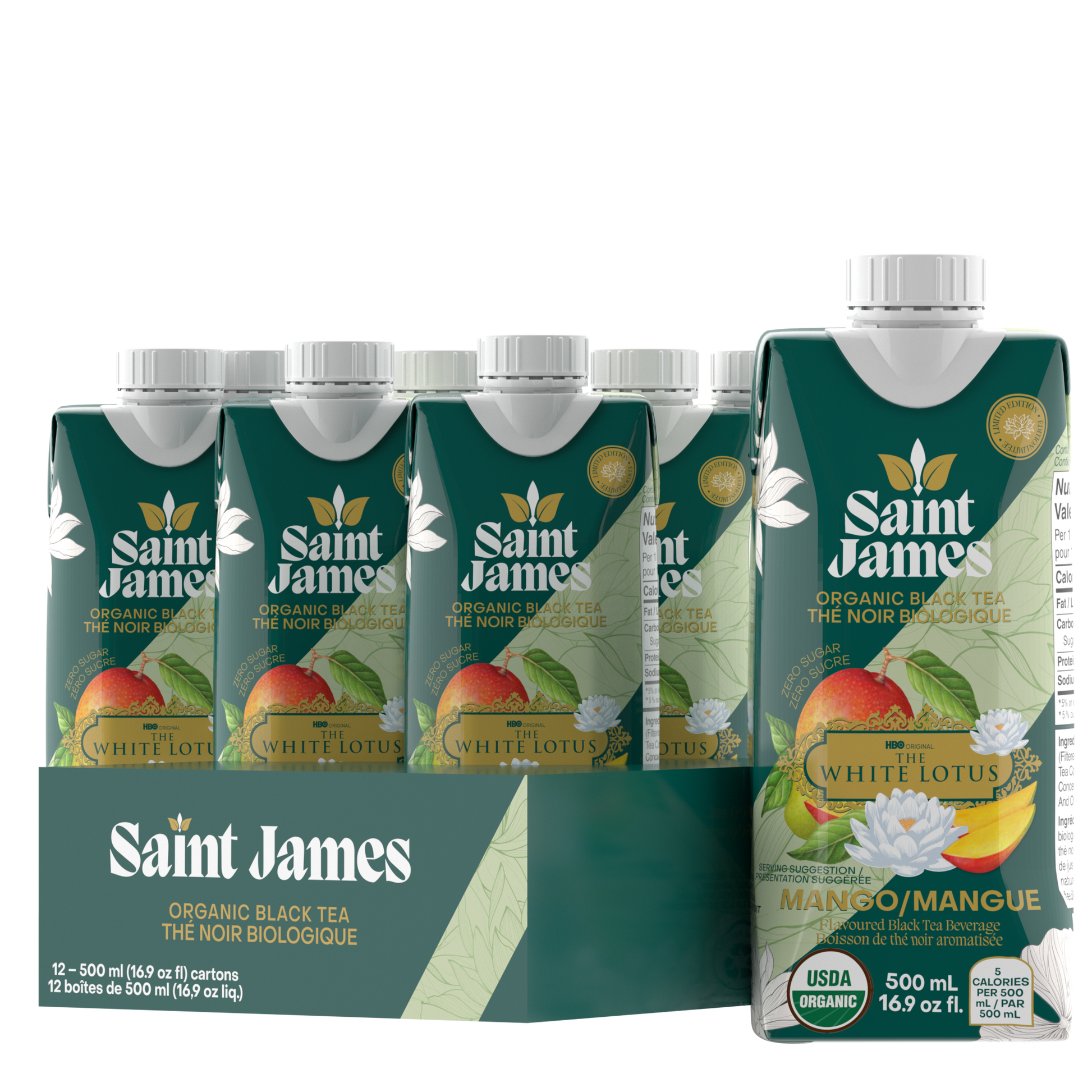 Slip into something tropical with The White Lotus Limited Edition Mango Black Tea by Saint James. Created in partnership with HBO and their award-winning show, this tea is overflowing with juicy mango and the rich flavors of black tea with the perfect hint of sweetness. Enjoy each sip as they transport you straight to the luxurious White Lotus Resort in Thailand.
